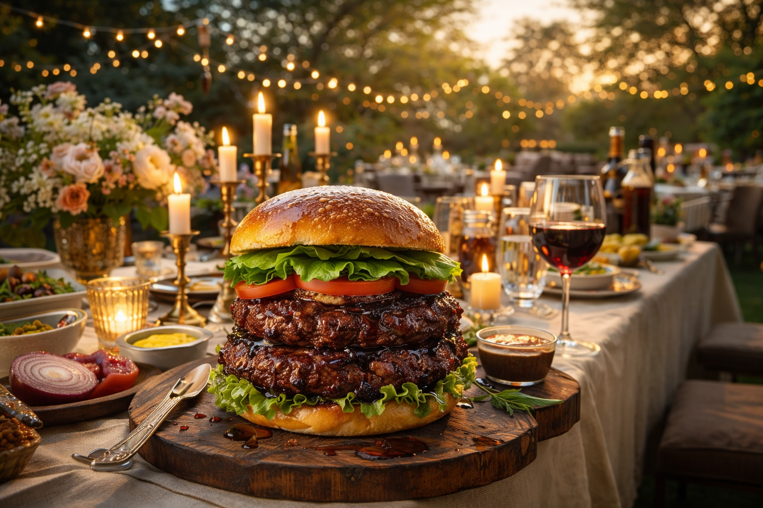 | 3. | Place the burgers on the preheated grill, and cook 10 to 15 minutes per side, until the burgers are browned and no longer pink in the middle. Brush each burger with barbecue sauce, flip them and grill for 5 minutes to slightly char the sauce. Brush the other sides with sauce, flip, and grill for 5 more minutes to cook the other side. |